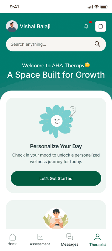 Aha helps people stay connected to their progress in the days between sessions, when emotions shift and reflection is hardest.