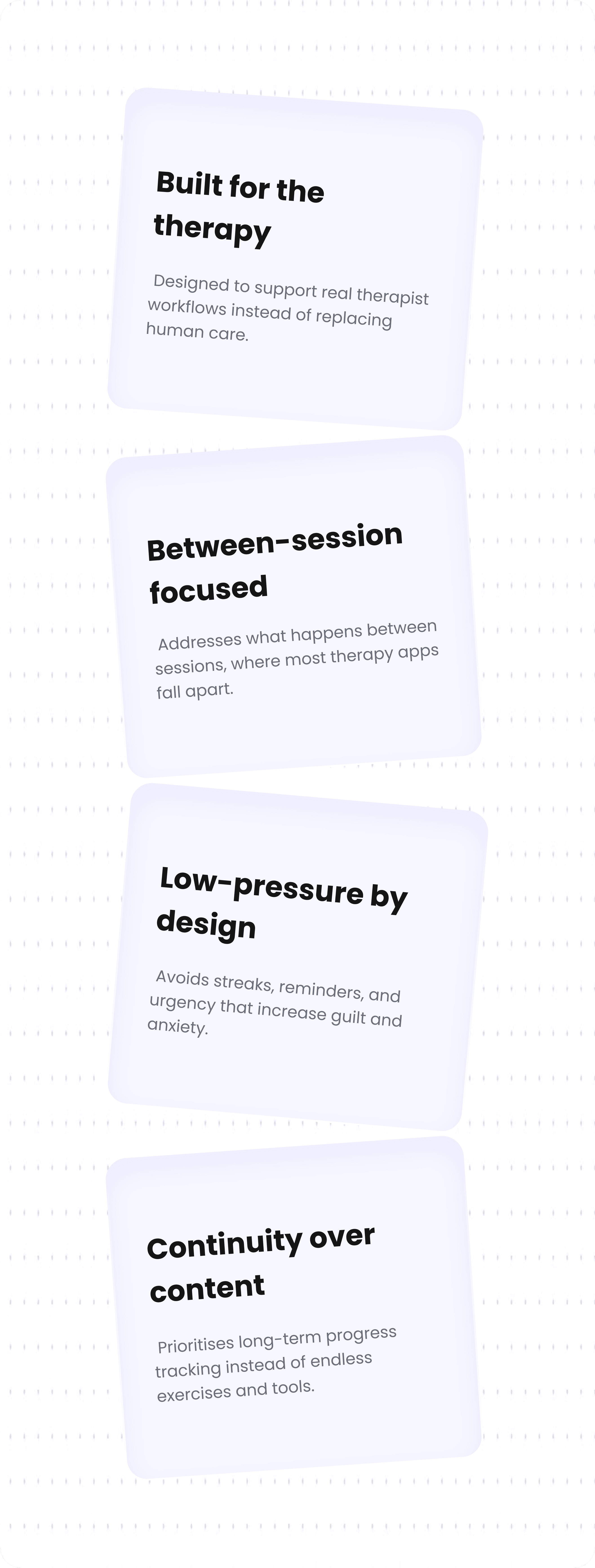 Reframed the product around what breaks between sessions, not during therapy