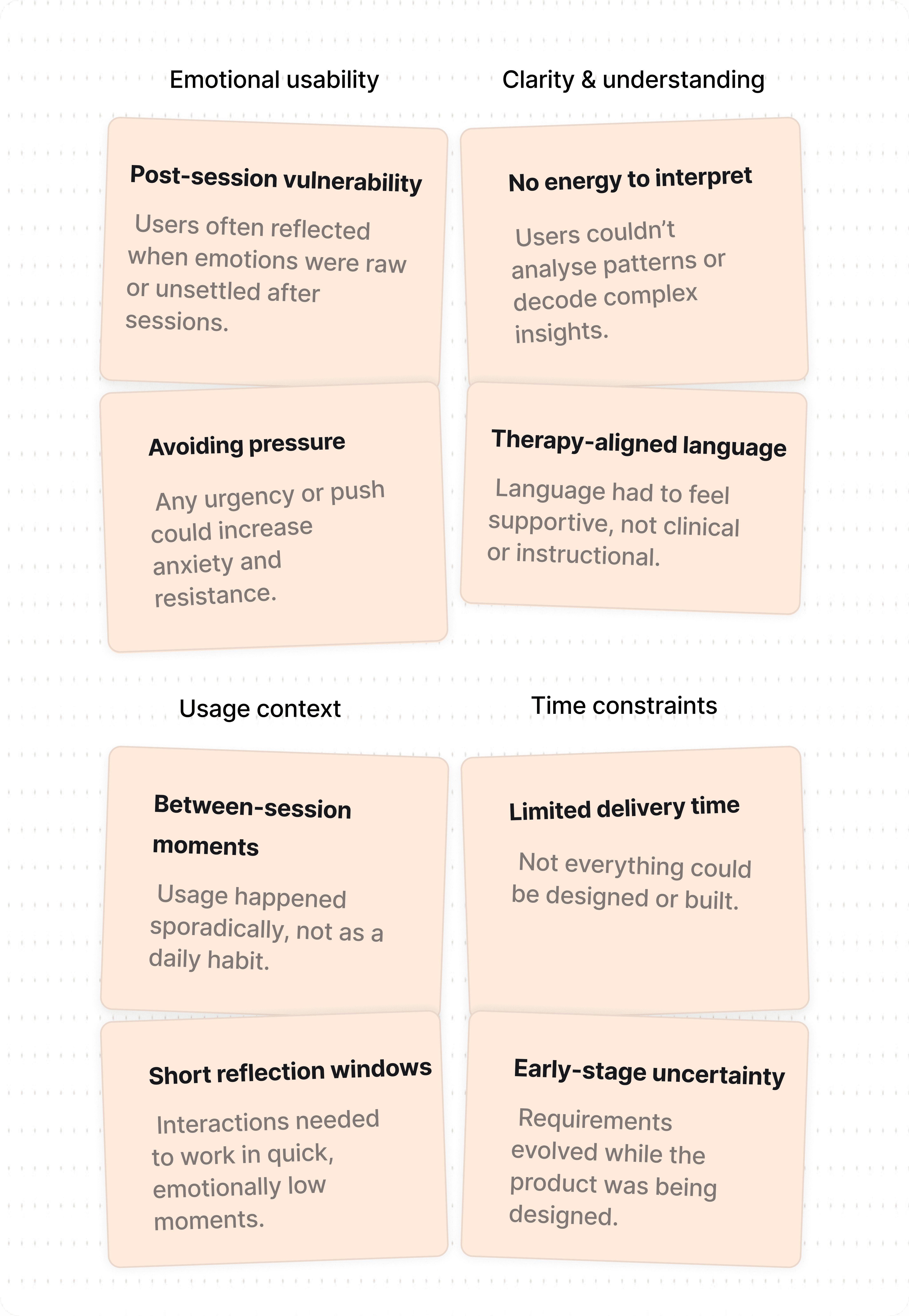 Guidance over freedom — We reduced choices so users feel supported instead of overwhelmed during vulnerable moments.